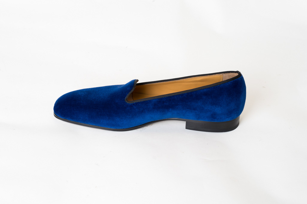 The Gaziano & Girling Ronald velvet evening slippers come on Gaziano & Girlings slipper last and in a standard E width.