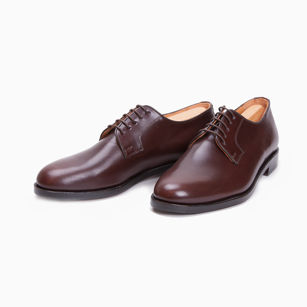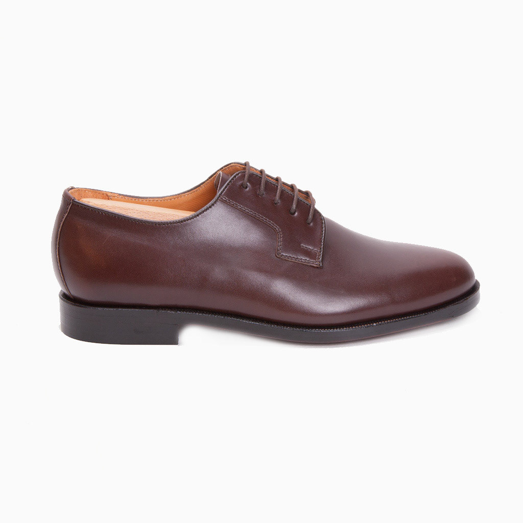 Handmacher Primus model 29, a cap-toe blucher in mocca calf with wood-pegged leather sole from Austrian company Handmacher.