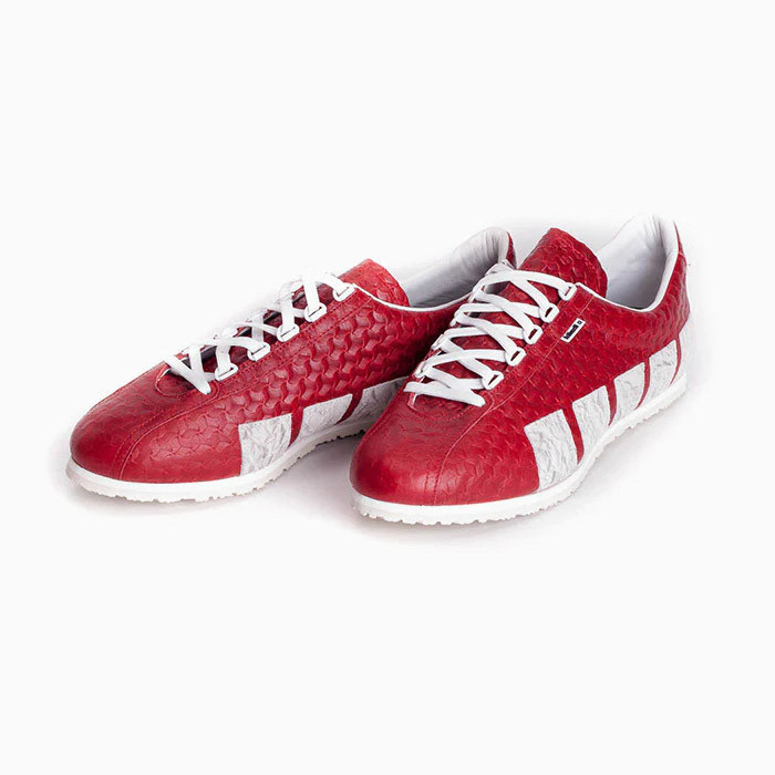Red Embossed Suede / White Crashed Suede on the FL Last